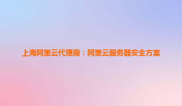 上海阿里云代理商:阿里云服務(wù)器安全方案