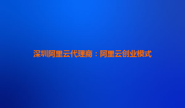 深圳阿里云代理商:阿里云創(chuàng)業(yè)模式