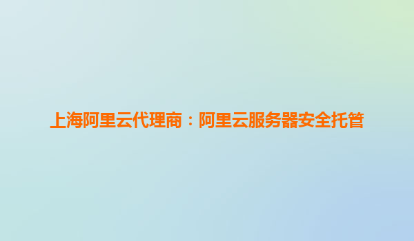 上海阿里云代理商:阿里云服務(wù)器安全托管