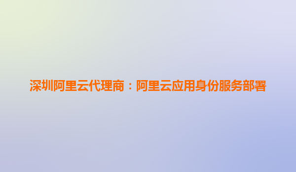 深圳阿里云代理商:阿里云應(yīng)用身份服務(wù)部署