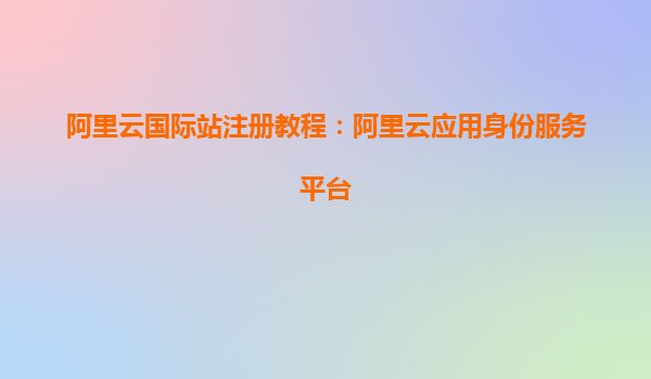 阿里云國際站注冊教程:阿里云應用身份服務平臺