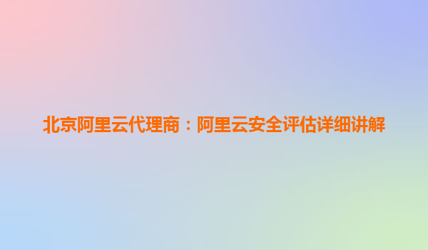 北京阿里云代理商:阿里云安全評估詳細(xì)講解