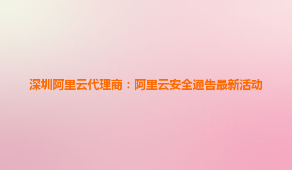 深圳阿里云代理商:阿里云安全通告最新活動(dòng)