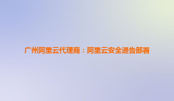 廣州阿里云代理商:阿里云安全通告部署