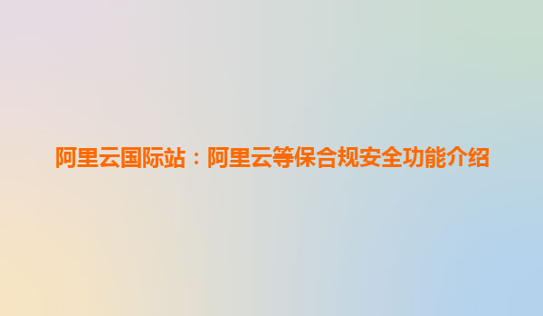 阿里云國際站:阿里云等保合規(guī)安全功能介紹