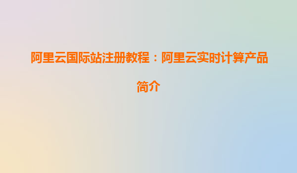阿里云國際站注冊教程及實(shí)時(shí)計(jì)算產(chǎn)品簡介