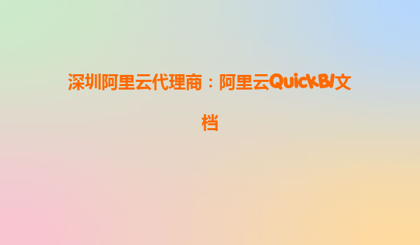 深圳阿里云代理商:阿里云QuickBI文檔