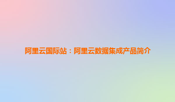 阿里云國(guó)際站:阿里云數(shù)據(jù)集成產(chǎn)品簡(jiǎn)介