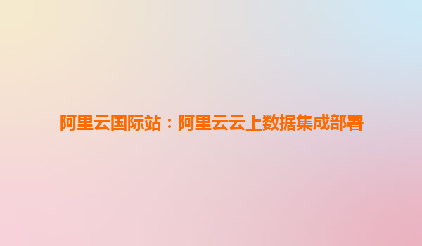 阿里云國(guó)際站:阿里云云上數(shù)據(jù)集成部署