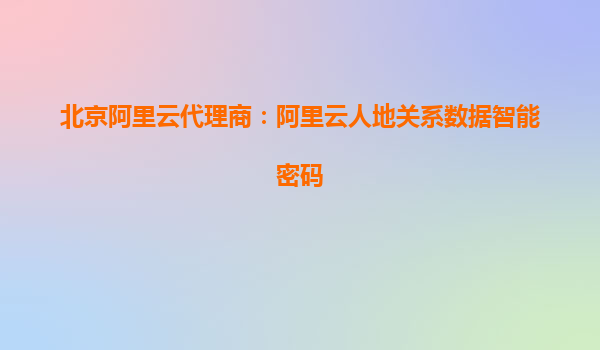 北京阿里云代理商:阿里云人地關(guān)系數(shù)據(jù)智能密碼