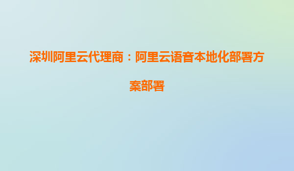 深圳阿里云代理商:阿里云語音本地化部署方案部署