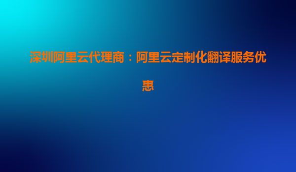 深圳阿里云代理商:阿里云定制化翻譯服務(wù)優(yōu)惠