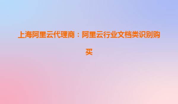 上海阿里云代理商:阿里云行業(yè)文檔類識別購買
