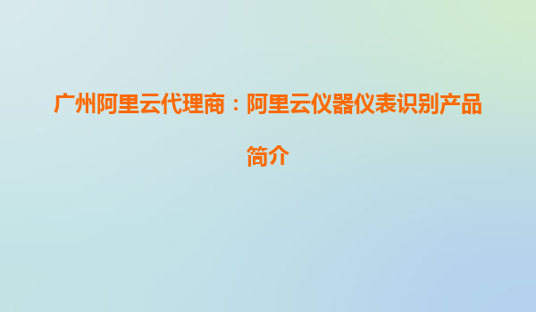 廣州阿里云代理商:阿里云儀器儀表識(shí)別產(chǎn)品簡介