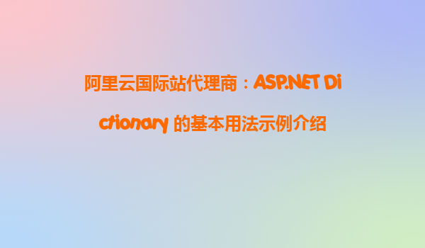 阿里云國際站代理商:ASP.NET Dictionary 的基本用法示例介紹