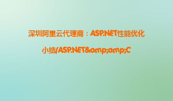 深圳阿里云代理商:ASP.NET性能優(yōu)化小結(jié)(ASP.NET & C#)