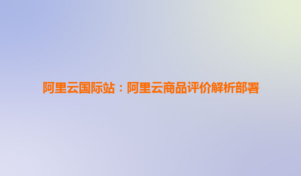 阿里云國際站:阿里云商品評價解析部署詳解