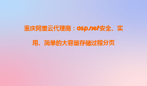 重慶阿里云代理商:基于ASP.NET的安全、實用、簡單的大容量存儲過程分頁解決方案