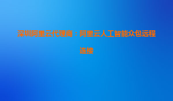 深圳阿里云代理商:阿里云人工智能眾包遠(yuǎn)程連接的優(yōu)勢(shì)與應(yīng)用
