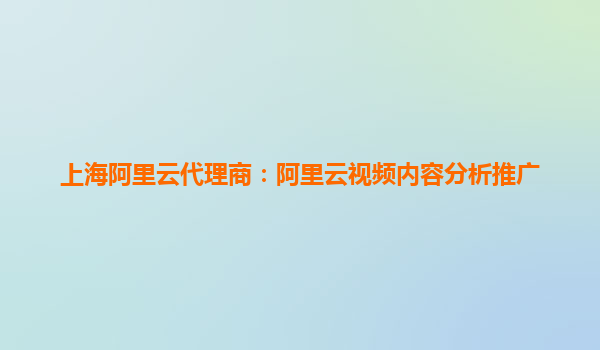 上海阿里云代理商:阿里云視頻內(nèi)容分析推廣