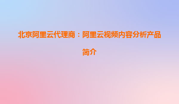 北京阿里云代理商:阿里云視頻內(nèi)容分析產(chǎn)品簡介