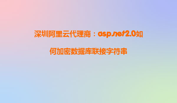 深圳阿里云代理商:asp.net2.0如何加密數(shù)據(jù)庫連接字符串