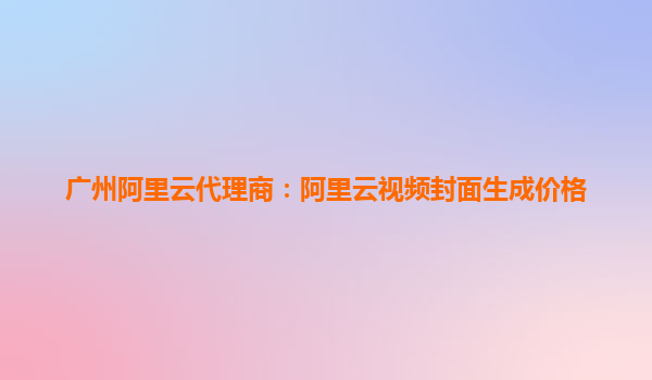 廣州阿里云代理商: 阿里云視頻封面生成價格分析