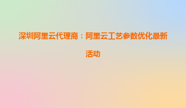 深圳阿里云代理商:阿里云工藝參數(shù)優(yōu)化最新活動,助力企業(yè)智能升級