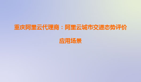 重慶阿里云代理商:阿里云城市交通態(tài)勢評價(jià)應(yīng)用場景解析