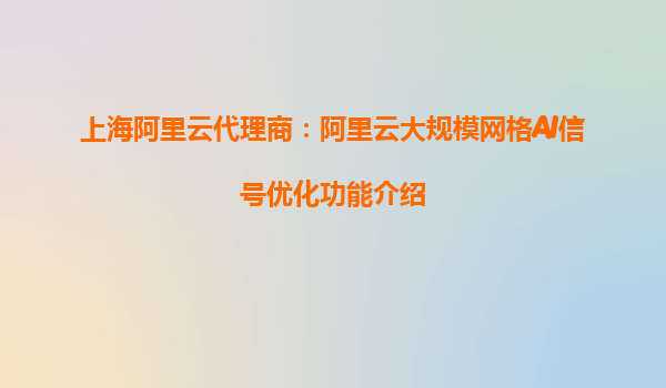 上海阿里云代理商:阿里云大規(guī)模網格AI信號優(yōu)化功能介紹