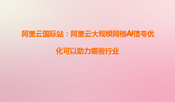 阿里云大規(guī)模網(wǎng)格AI信號優(yōu)化:驅(qū)動多行業(yè)智能化升級的強勁引擎