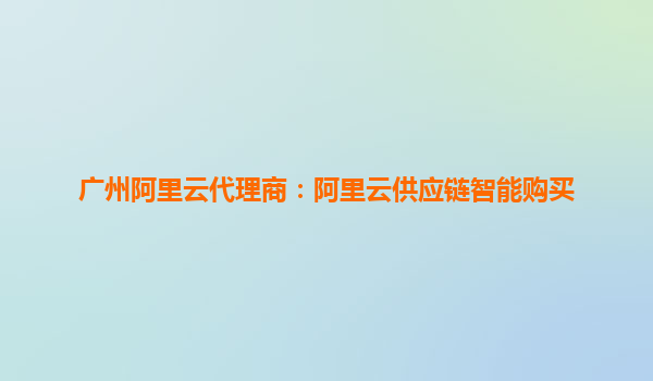 廣州阿里云代理商:開啟供應(yīng)鏈智能購買新紀(jì)元,助力企業(yè)數(shù)字化轉(zhuǎn)型