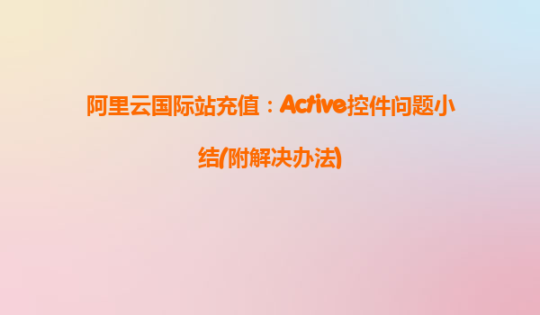 阿里云國際站充值:ActiveX控件問題全面解析與高效解決方案