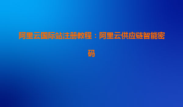 阿里云國際站注冊教程:開啟全球智能供應鏈新篇章