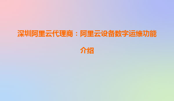 深圳阿里云代理商:解鎖設(shè)備數(shù)字運(yùn)維新價(jià)值