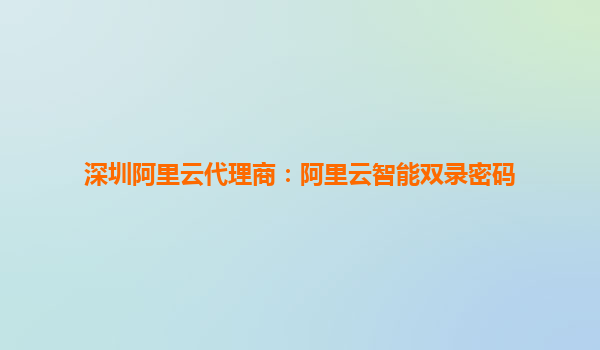 深圳阿里云代理商:阿里云智能雙錄密碼解決方案的全面解析