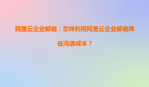 阿里云企業(yè)郵箱:如何高效降低企業(yè)溝通成本