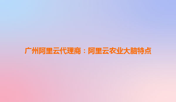 廣州阿里云代理商:深度解析阿里云農(nóng)業(yè)大腦的核心優(yōu)勢