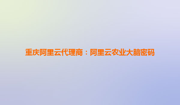 重慶阿里云代理商:阿里云農(nóng)業(yè)大腦密碼