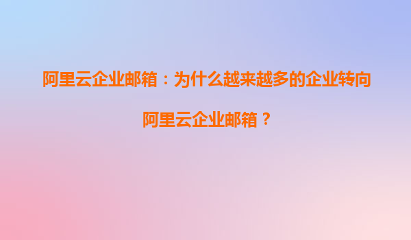 阿里云企業(yè)郵箱:為什么越來越多的企業(yè)轉(zhuǎn)向阿里云企業(yè)郵箱?