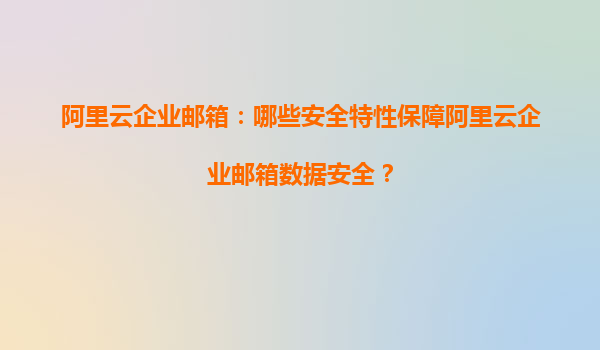 阿里云企業(yè)郵箱:全方位安全特性保障企業(yè)數(shù)據(jù)安全