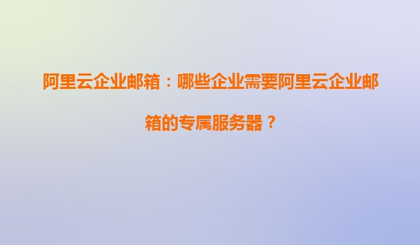 阿里云企業(yè)郵箱:哪些企業(yè)需要阿里云企業(yè)郵箱的專屬服務(wù)器?
