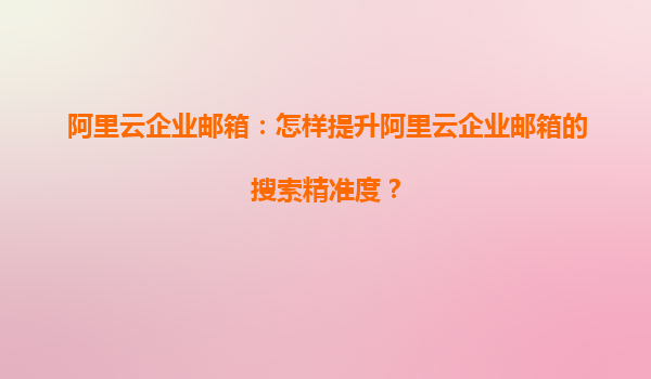 阿里云企業(yè)郵箱:怎樣提升阿里云企業(yè)郵箱的搜索精準(zhǔn)度?
