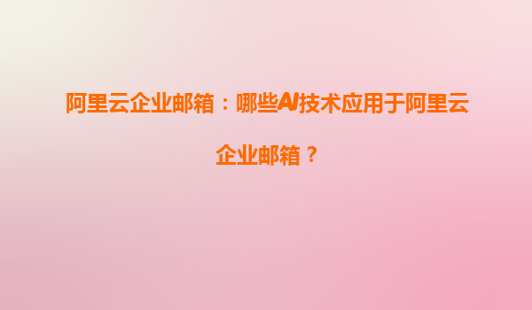 阿里云企業(yè)郵箱:哪些AI技術應用于阿里云企業(yè)郵箱?