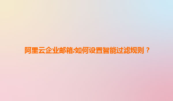 阿里云企業(yè)郵箱:如何設置智能過濾規(guī)則?