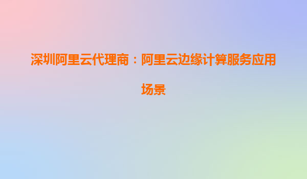 深圳阿里云代理商:阿里云邊緣計(jì)算服務(wù)應(yīng)用場景解析