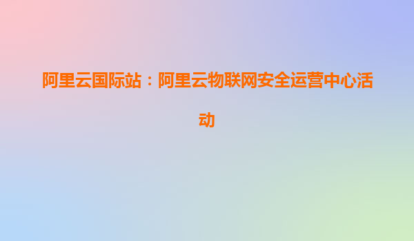 阿里云國際站:阿里云物聯(lián)網(wǎng)安全運(yùn)營中心活動(dòng)解析