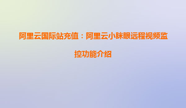 阿里云國際站充值:解鎖阿里云小瞇眼遠(yuǎn)程視頻監(jiān)控的強大功能