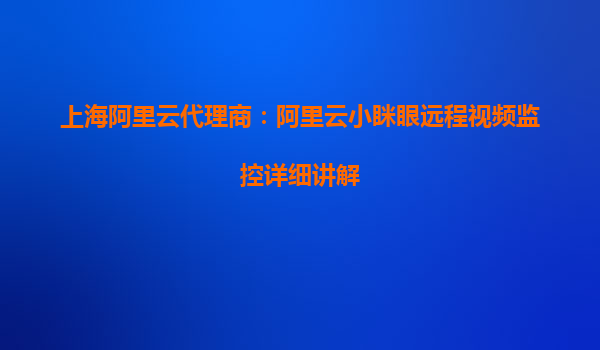 上海阿里云代理商:阿里云小瞇眼遠(yuǎn)程視頻監(jiān)控詳細(xì)講解