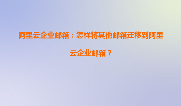 阿里云企業(yè)郵箱:如何將其他郵箱遷移到阿里云企業(yè)郵箱?